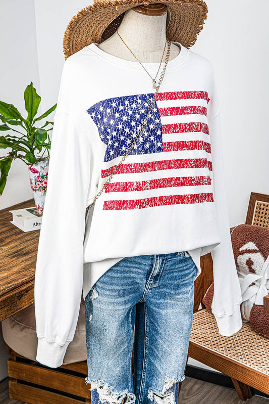 Fashion-W American Flag Drop Shoulder Loose Sweatshirt