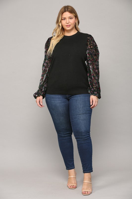 Floral Burnout Sleeve Sweater in Curvy