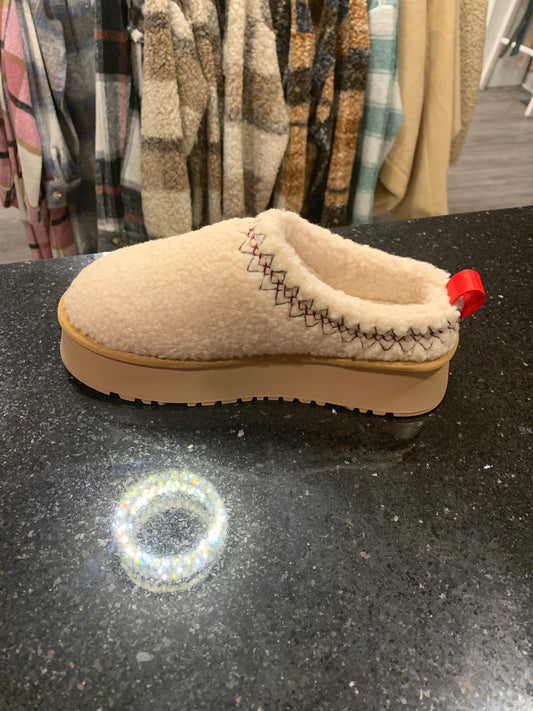 Fur Platform Sherpa Slippers in Beige
