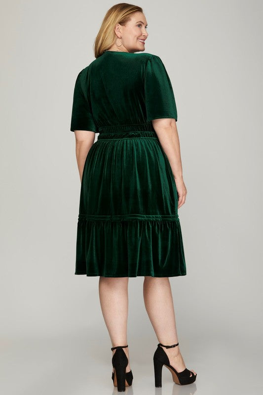 Becca Balloon Sleeve Jacquard Dress in Curvy