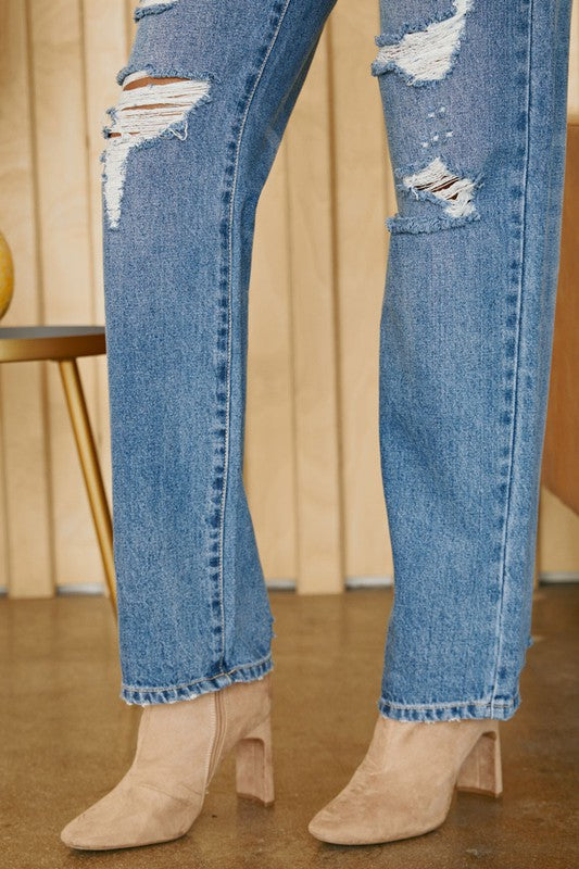 Overheard Mid Rise Cuffed Slim Straight Jeans
