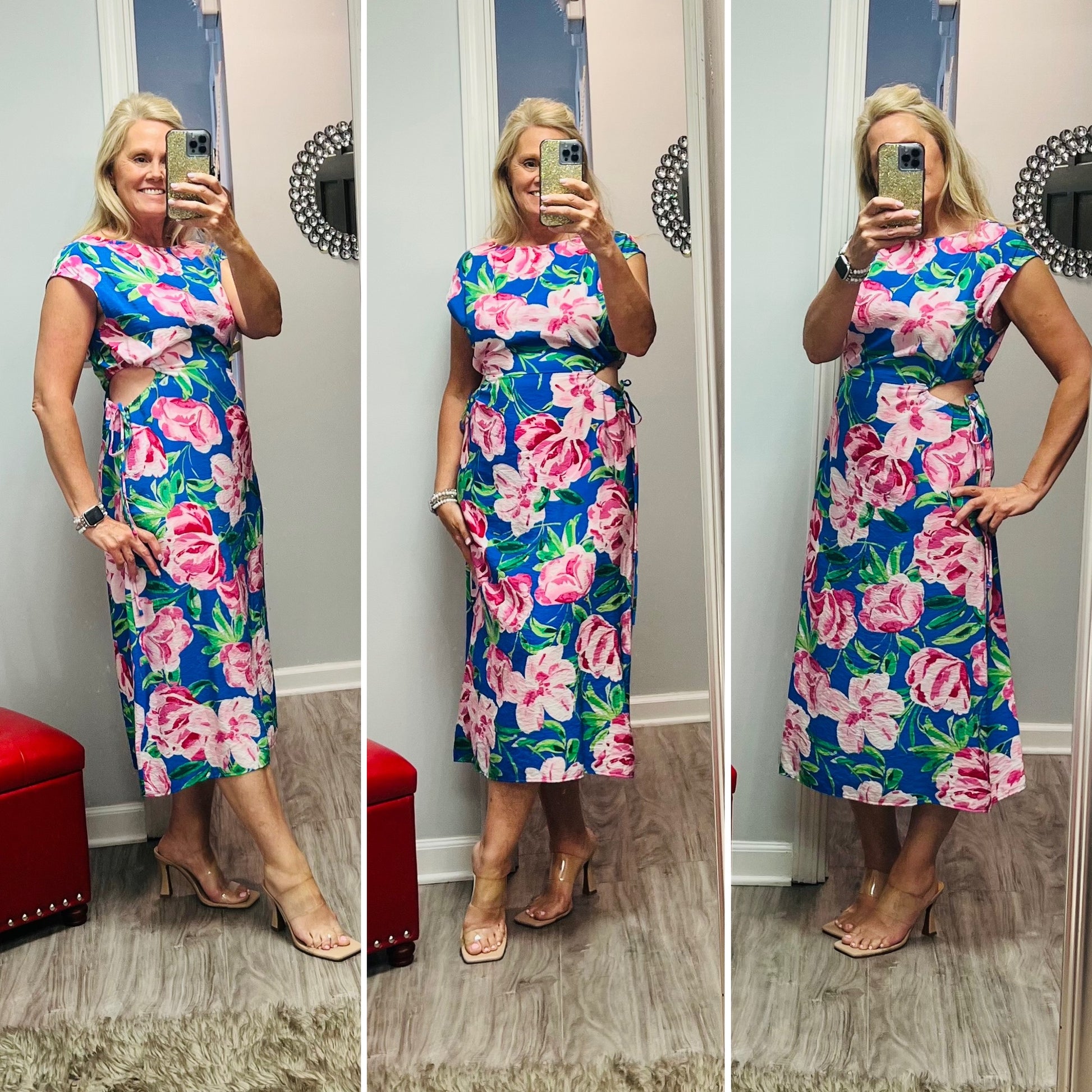 Be the envy of every garden party in our Bring Me Flowers Dress! Crafted from a blend of 85% rayon and 15% nylon, this technicolor dress features playful ruched side cutouts for a flirty touch. Blooming with style and comfort, it's the perfect choice for any occasion.