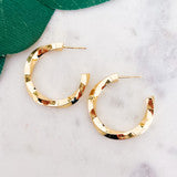 Crafted with a twisted design, these Gold-Dipped Twist Hoop Earrings add an elegant touch to any look. The 1.25" size is perfect for everyday wear. Made with real gold, these timeless earrings are sure to become a staple in any jewelry collection.