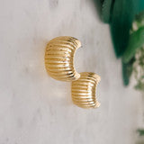 Introducing our Grooved Curve Post Earrings, the perfect addition to any jewelry collection. These elegant gold earrings feature a unique grooved design that adds a touch of sophistication to any outfit. With their curved post, they offer a comfortable fit that can be worn all day. Elevate your style with these must-have earrings.