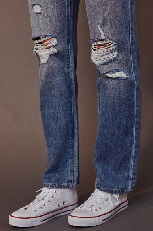 high rise 90'S STRAIGHT FIT STRETCHINESS LEVEL 1 RIGID DISTRESSED REGULAR HEM
