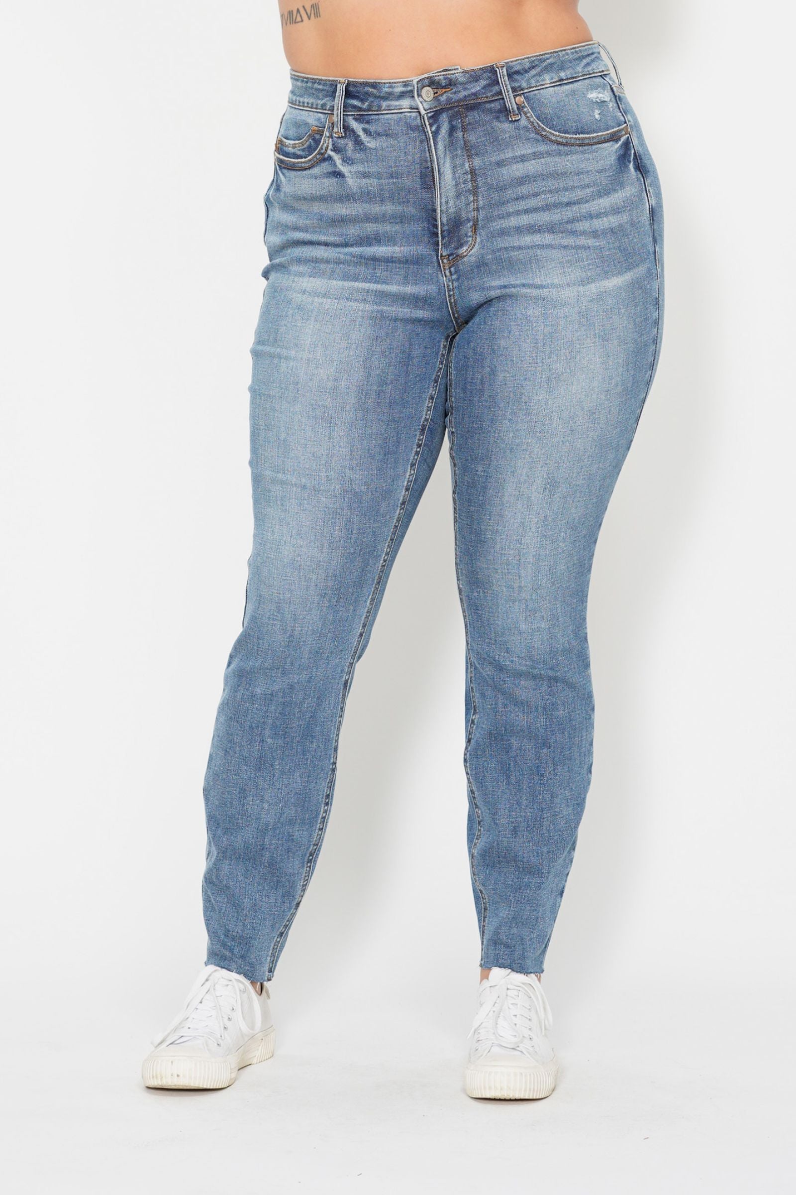These high-waisted vintage skinny jeans feature tummy control technology and shield pockets for a flattering and comfortable fit, designed specifically for curvy body types.