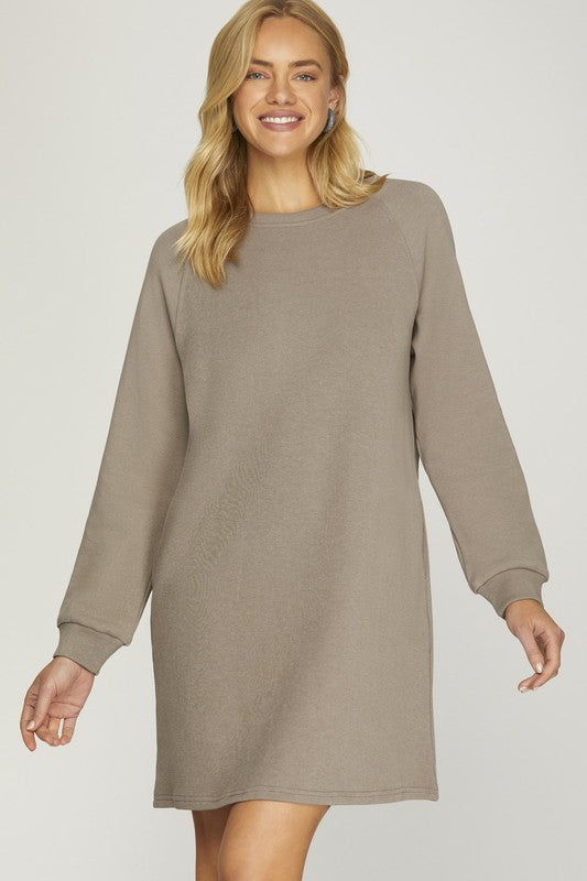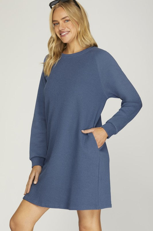 The Karley Knit Mini Dress is the perfect combination of style and functionality. With its long sleeves and heavy knit, it will keep you warm and comfortable while the side pockets add a practical touch. Available in both blue and mocha, this dress is a must-have for any fashion-forward individual.
