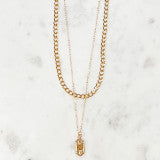 This two-layer necklace features a charming gold design, perfect for adding a touch of elegance to any outfit. With its layered design, it adds depth and visual interest, while the gold charm adds a subtle touch of sparkle. Elevate your jewelry collection with this must-have piece.