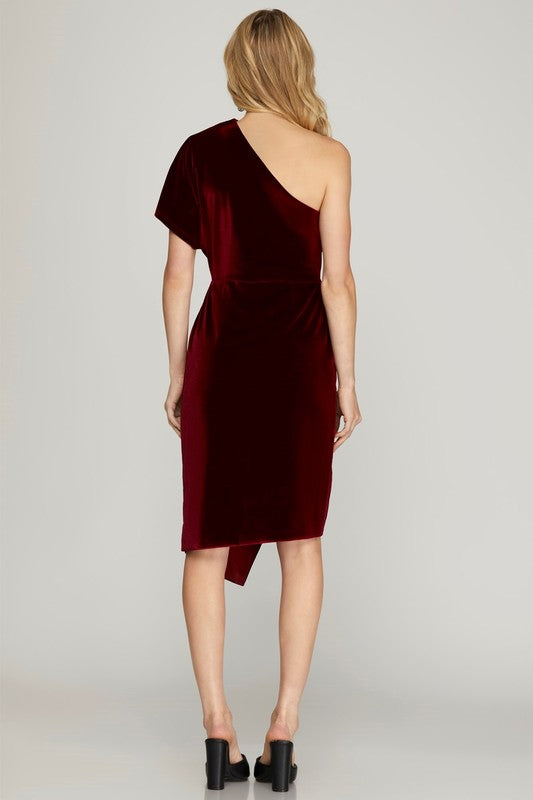 Experience the ultimate in elegance and femininity with our Only You One Shoulder Dress. The luxurious velvet fabric and unique one shoulder drop sleeve design will make you stand out at any event. The wrap skirt adds a touch of sophistication to this black dress. Make a statement and turn heads with Only You.