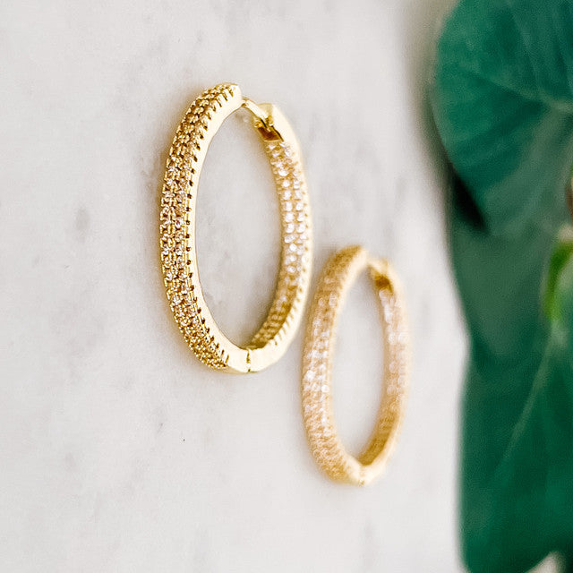 Add a sparkling twist to your look with these pave hoop earrings! Crafted to dazzle without the worry, they’re nickel and lead compliant for safe, comfortable wear. Perfect for adding a playful sparkle to any outfit, these hoops bring fun and flair wherever you go.