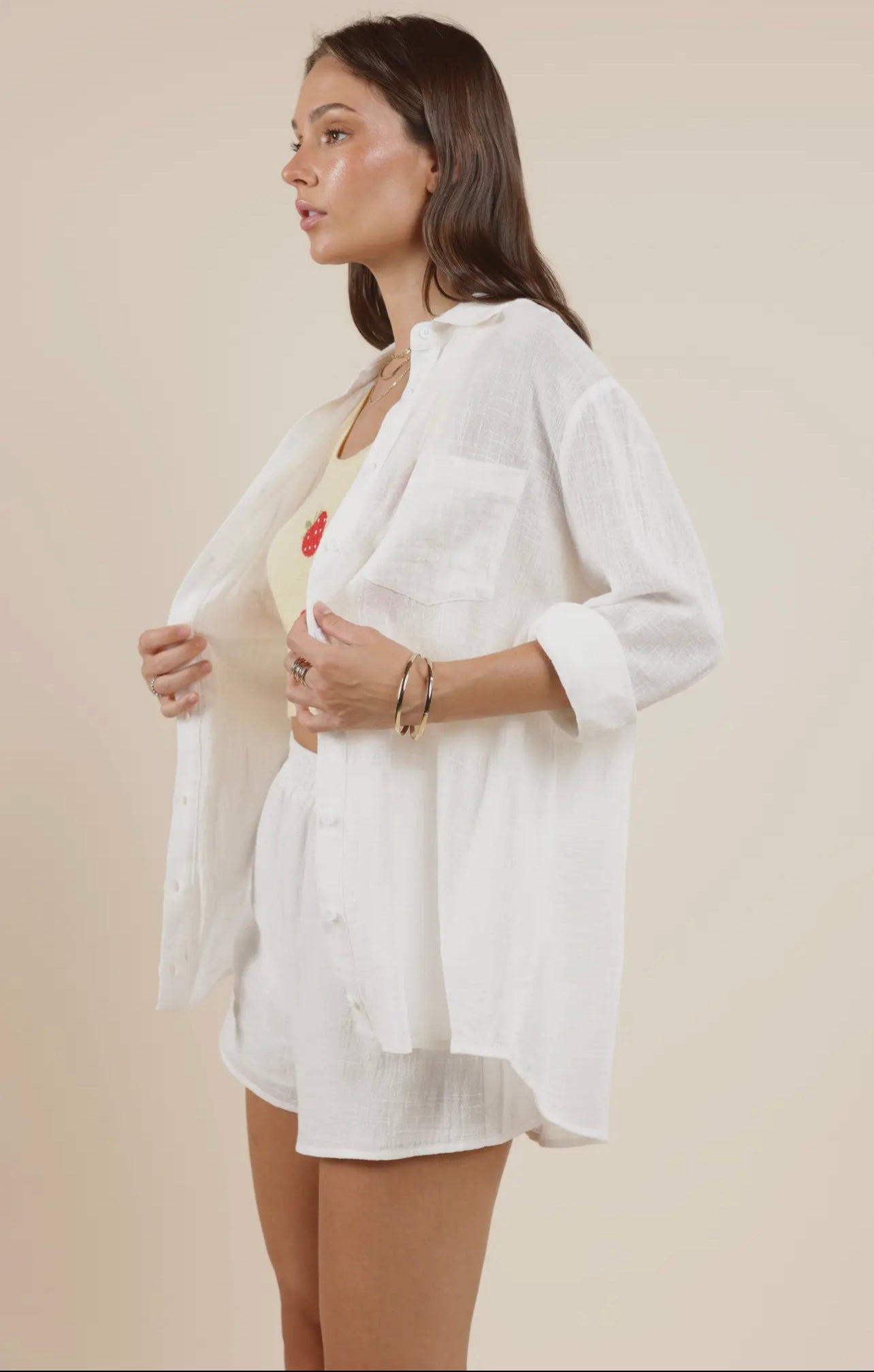Get ready for summer with the So Cal Button Up Shirt! Made from 100% soft cotton, this stylish shirt is available in both white and powder blue. Enjoy the lightweight and comfortable feel while looking effortlessly cool. Perfect for any occasion, this shirt is a must-have for any wardrobe.