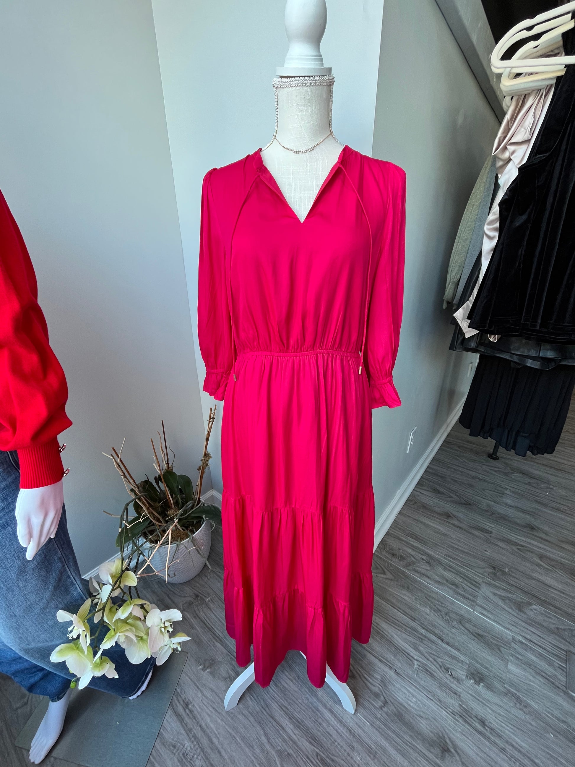 Fall head over heels for our Sweet For You Tiered Maxi Dress! With its fluttering ruffles and elegant Cherry color, you'll be the center of attention wherever you go. Perfect for any occasion, this dress is sure to make you feel confident and beautiful. Treat yourself to this must-have piece today!