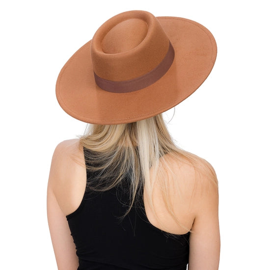 Wide Brim Bolero Felt Monochromatic Gross Grain Flat Bow Pork Pie Crown Hat -Brim Size: 3.75" (9.5 cm) -Head Size : OS ( About 57cm-58cm AKA M/L)